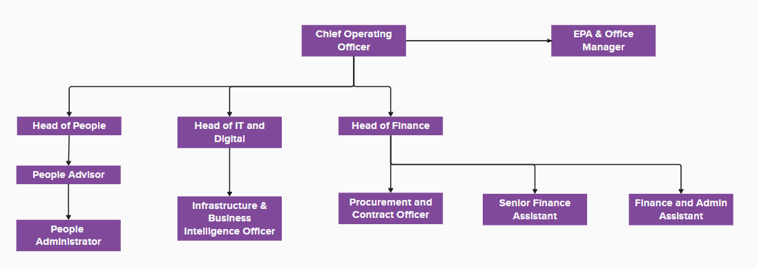 This is a visual representation of roles and reporting lines and doesn't reflect employee grades.